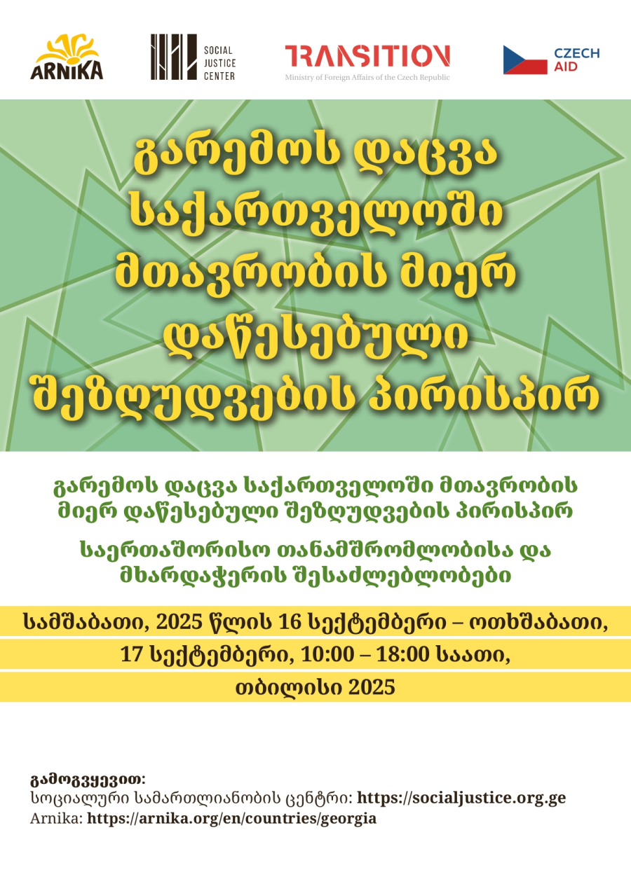 2025 წლის სექტემბერში გაიმართა კონფერენცია თემაზე – „გარემოს დაცვა საქართველოში მთავრობის შეზღუდვების ფონზე“. ღონისძიებაზე შეიკრიბნენ გარემოსდამცველი აქტივისტები, ექსპერტები, ჟურნალისტები და სამოქალაქო საზოგადოების წარმომადგენლები. მისი მიზანი იყო საქართველოში გარემოს დაცვის გამოწვევებისა და სამოქალაქო სივრცის შეზღუდვის საკითხების განხილვა.